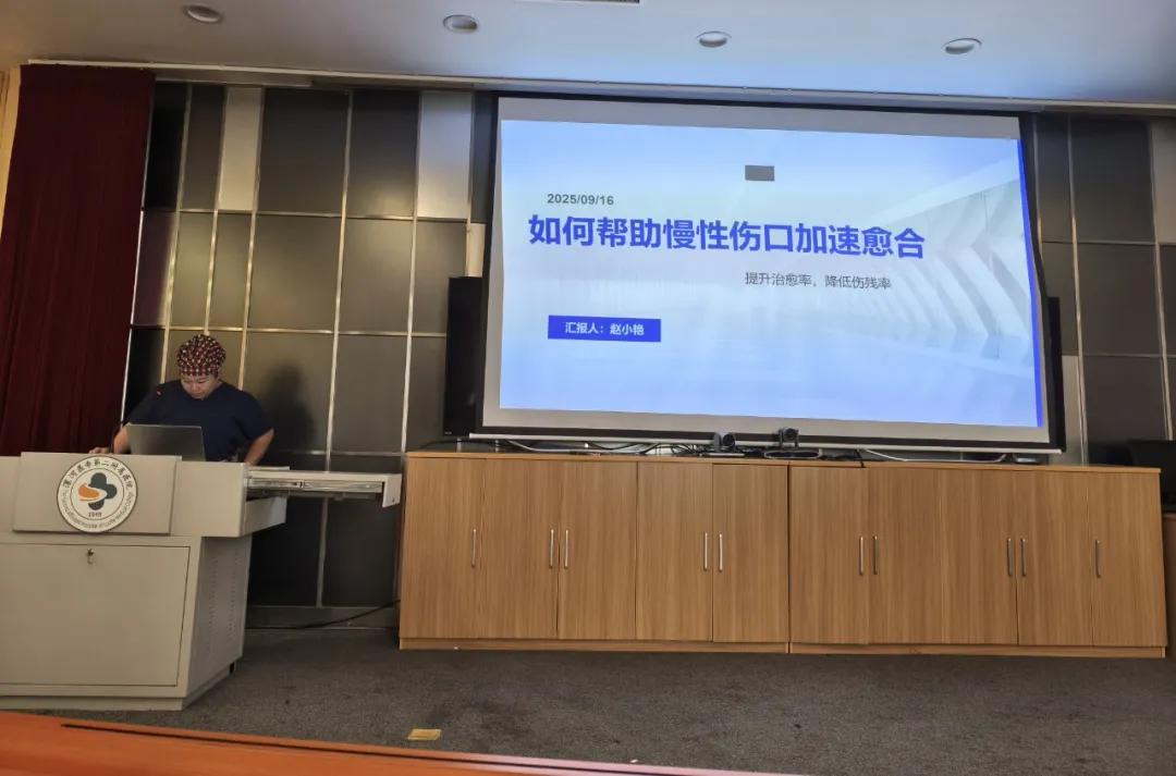 随后,压力性损伤/伤口护理学组学术调研组长赵小艳老师围绕《如何帮助慢性伤口加速愈合》展开授课。她深入探讨慢性伤口愈合延迟的常见诱因,如局部血运、感染、营养不良等,进而系统阐述了个性化护理方案制定、伤口清创技巧、感染防控要点,以及通过优化局部环境、结合物理治疗等促进愈合的实用手段。丰富的内容和实用的方法,为护理人员应对慢性伤口难题提供了清晰思路与有效策略。