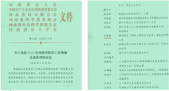 为表彰先进、树立榜样,进一步激励广大妇女奋进新征程、建功新时代,为奋力谱写中原大地推进中国式现代化新篇章作出新的更大贡献,省总工会、团省委、省妇联、省科协、省社科联、省红十字会决定,授予60个单位、200名同志河南省三八红旗奖。漯河医专二附院(漯河市骨科医院、漯河市立医院)重症医学科主任王鲜颖荣获“河南省三八红旗奖”先进个人称号。