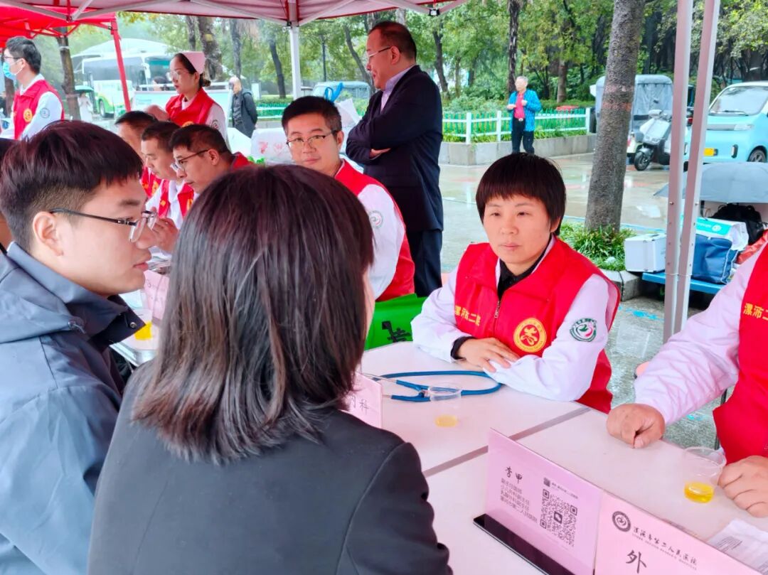 活动由党委副书记、院长胡海英带队,尽管现场细雨淅沥,义诊专家们仍提前到位,有序开展诊疗服务,专家们热情接待每一位前来咨询的市民,耐心询问他们的身体状况、病史,仔细进行体格检查,并根据检查结果给予专业的诊断和治疗建议。对于一些患有慢性疾病的市民,专家们还详细讲解了日常饮食、运动、用药等方面的注意事项,帮助他们更好地管理自己的健康。同时,现场还设置了健康宣传展板,发放健康宣传资料,向市民普及常见疾病的预防知识和健康生活方式,增强市民的健康意识和自我保健能力。