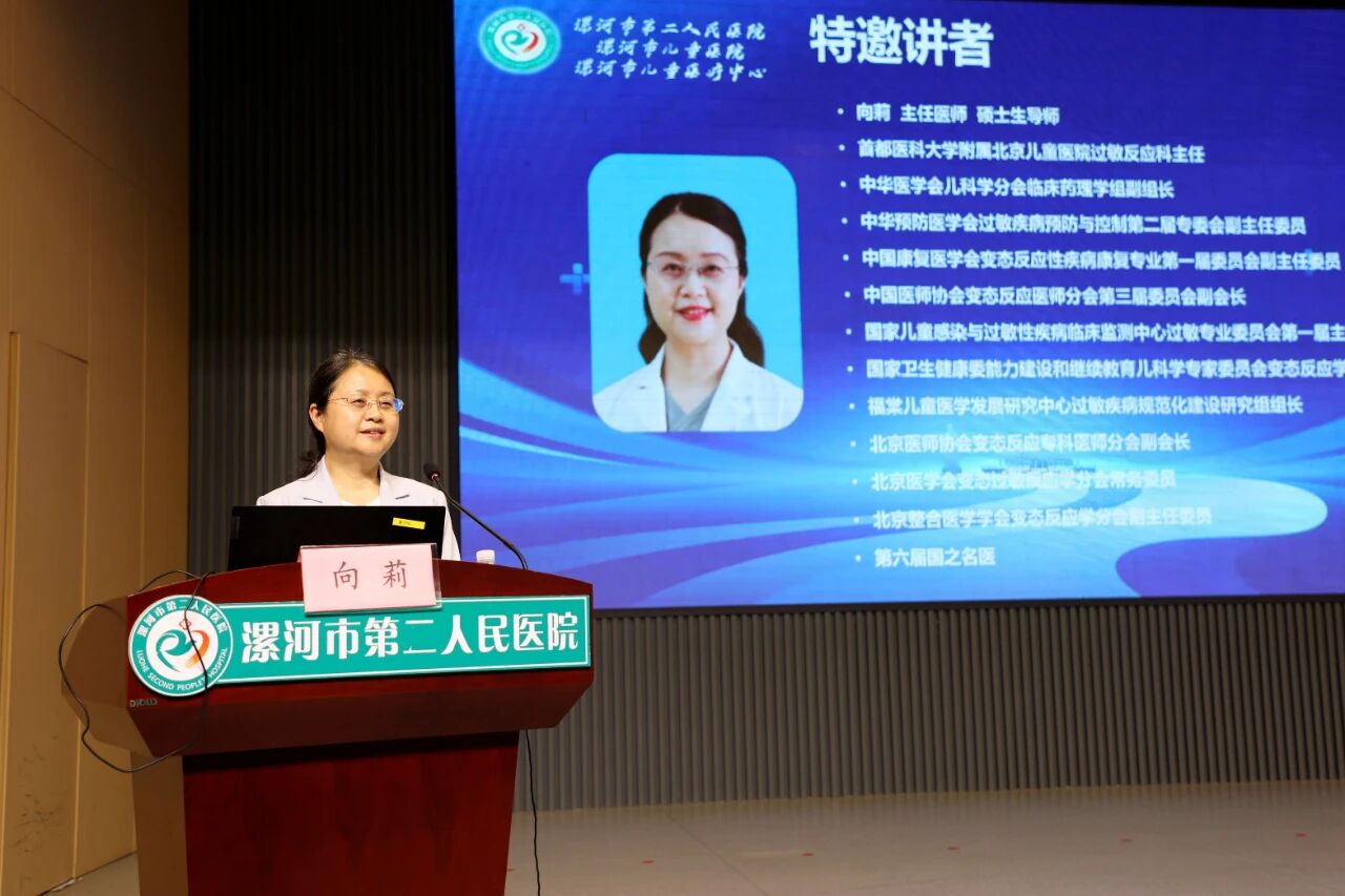学术会由北京儿童医院向莉教授率先开讲,以《2型炎症与气道过敏》为题,把气道过敏相关最新研究热点、过敏学科管理建设经验引入沙澧医学土壤;河南省儿童医院金志鹏教授、李小芹教授、王芳洁教授、郑州大学第三附属医院徐发林教授和郑州大学第一附属医院王叨教授等5位教授,分别对2025版《儿童脓毒性休克管理专家共识》《牛奶蛋白过敏与乳糖不耐受》《重症川崎病诊治》《新生儿低氧型呼吸衰竭》《坏死性淋巴结炎》进行权威解读,让“新共识”第一时间落地生根;郑州大学第三附属医院张艳丽教授聚焦儿童过敏性疾病的防治策略、河南省人民医院董燕教授则对儿童癫痫和常见癫痫综合征进行了通俗易懂的阐释,河南医药大学第一附属医院李树军教授对《儿童重症肺炎的早期认识与病原体的寻找》和《人工智能与医学融合》两个专题进行精彩分享,把现场的会议引向高潮。