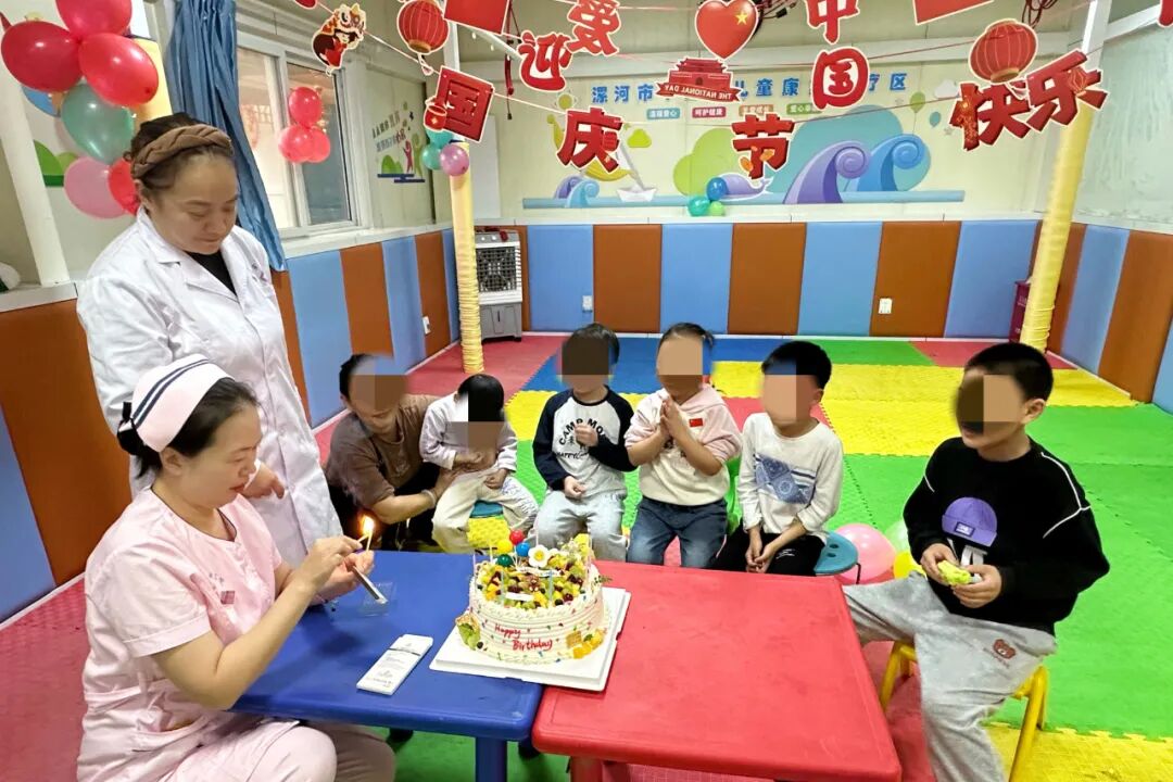 手工环节的创意余温未散,现场又迎来了最温馨的集体生日会。科室为近期过生日的小寿星们准备了精美的生日蛋糕。当“生日快乐”的歌声响起,烛光映照着孩子们的笑脸,分享的甜蜜与成长的喜悦在空气中弥漫。 此次“月满华诞,情暖双节”主题活动,不仅是一次节日的庆祝,更是一次爱的传递和信念的凝聚。漯河市中医院儿童康复科将继续用专业与爱心,守护每一位孩子的成长,陪伴他们走向更灿烂的明天。(儿 康 王雨欣)