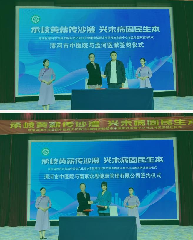 核心签约环节中,两项重磅合作相继落地:首先,杨轶书记代表漯河市中医院与孟河医派传承人、北京健源三堂医疗科技有限公司ceo张国栋签约,双方将在人才培养、专科建设、治未病服务等领域深度协作,依托在建的中医治未病中心,打造十大专病管理中心,让孟河医派学术精华在沙澧大地生根结果;紧接着,市中医院再与南京众思健康管理有限公司达成合作,杨轶书记与江苏梵音健康管理有限公司董事长、南京众思健康管理有限公司运营总监仉婷签约,双方将围绕母婴养护中心建设、产褥期中医膳食营养等方向展开合作,进一步丰富漯河中医药服务内涵。