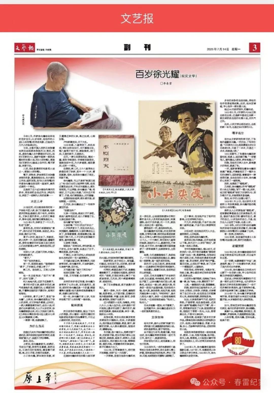 前天,拙作《百岁徐光耀》在“文艺报”发表后,点击量迅速突破4万。