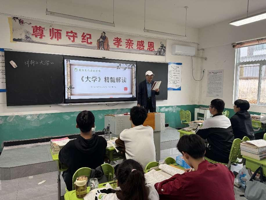 学校创始人朱喜洋感慨地说:他们对孩子的教育主要抓两大方面,一是以国学教育为突破口抓思想教育,让孩子们端正思想,端正学习动机;二是以名人名家和当今的感人事例为抓手抓拼搏吃苦教育,让孩子们懂拼搏,能吃苦。他举例说前段时间让学生反复看纪录片《跋山涉水上学路》后学生学习态度上变化是非常的明显。