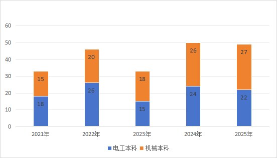 近五年漯河技师学院升学部电工专业、机械专业学子被天职师大对口升学本科录取人数