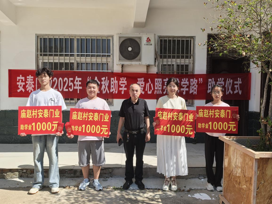 2025年8月22日上午,龙城镇庙赵村洋溢着温暖与希望的氛围,爱心企业安泰门业2025年“金秋助学·爱心照亮求学路”助学仪式在这里隆重举行,为村内4名即将踏入大学校门的优秀学子送去每人1000元助学金,以实际行动履行企业社会责任,鼓励村里的优秀学子努力奋进,帮助他们更好地开启大学生活。