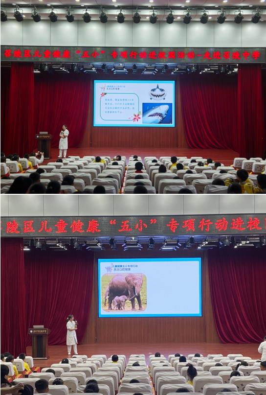 9 月 17 日上午,召陵区儿童健康 “五小” 专项行动进校园活动在召陵中学争辉厅开展。此次活动由召陵区人民医院联合召陵中学少先大队部主办,以守护少年儿童身心健康为抓手,将党建关怀转化为民生实事,面向少年儿童打造 “医疗 教育” 的健康育人新场景。