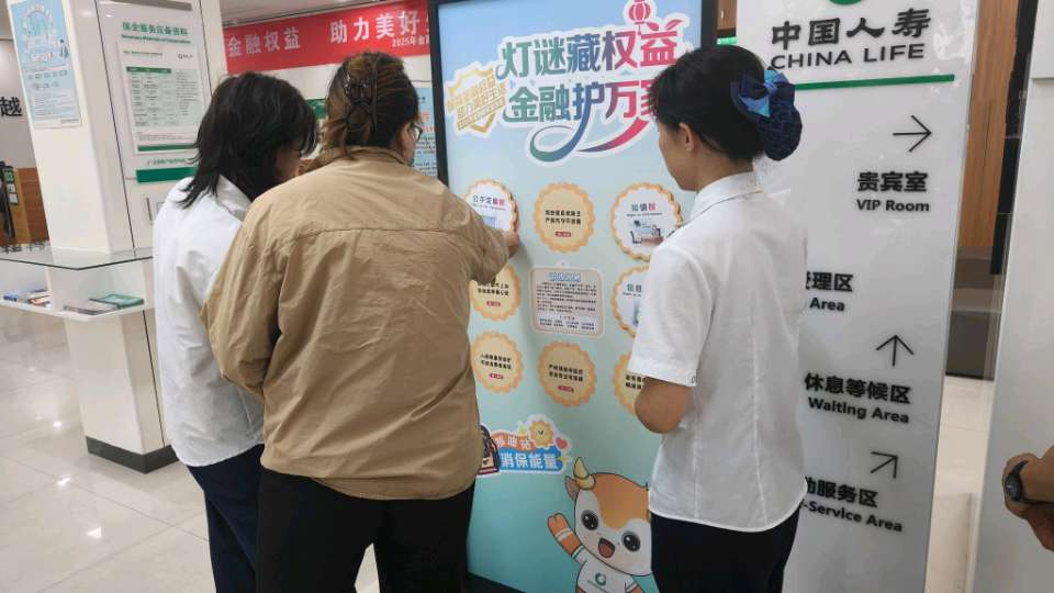 为积极响应监管部门的号召,切实提升社会公众金融素养,守护金融消费者合法权益,在2025年9月15日至21日金融教育宣传周期间,中国人寿寿险漯河分公司在黄河路柜面消保教育宣传基地设置“消保能量加油站”宣传专区,开展“灯谜藏权益,金融护万家”活动。