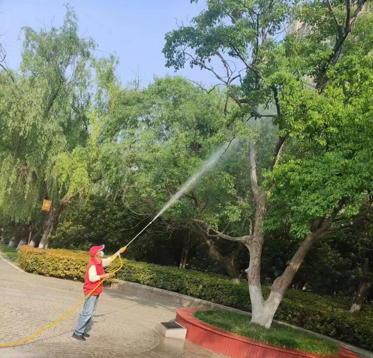 科学施策促生机。管护团队对古树树洞进行规范化清理、消毒与修复,定期实施复壮施肥;为倾斜树木加装钢架支撑,筑牢安全屏障;干旱期采用滴灌技术精准补水,扩挖树坑并铺设火山岩增强土壤透气性;针对常见病虫害,提前开展专项防治,通过缠绑防虫胶带、喷洒石硫合剂等组合措施,织密病虫害防护网。为更好地保护古树名木资源,近年来,市城市管理局积极开展古树名木日常检查、巡查,及时做好施肥、营养挂水、病虫害防治等工作,促进人与自然和谐共生。