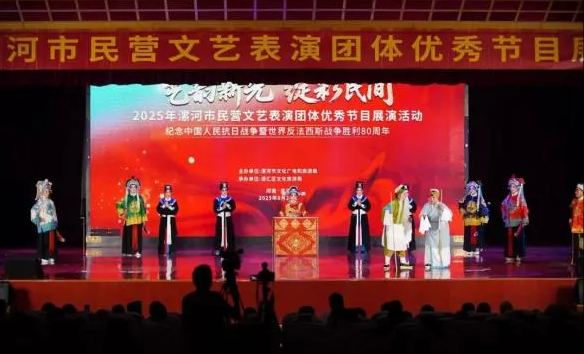 走进河上街景区、漯湾古镇的非遗集市,传统技艺不再是静止的展品,而是跃动的时代语言。泥塑艺人指尖流转,捏出“牛行街的百年变迁”;剪纸巧手巧思妙构,将惠民政策融入花鸟图案;豫剧名家登临古戏台,唱响《江姐》《十送红军》等红色经典,用乡音传党音,以艺术润民心。