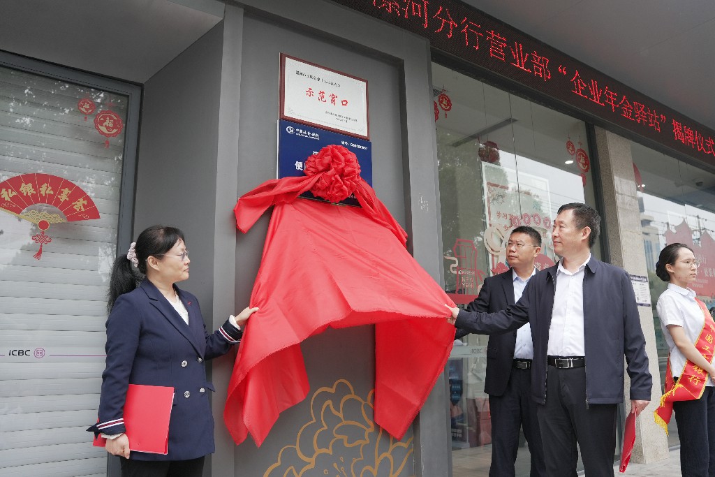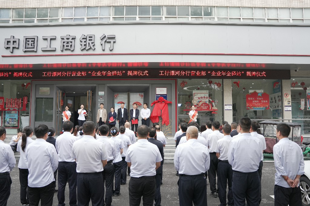 2025年9月18日,中国工商银行漯河分行营业部隆重举行“企业年金工行服务驿站”揭牌仪式。市人社局副局长赵振安;工行河南省分行养老金融与资产托管中心总经理常娜;工行漯河市分行党委书记、行长邢会锋;工行漯河市分行行长助理杨景坡以及市人社局相关处室负责人、省市行相关部门同仁、重点客户代表共同出席揭牌仪式。