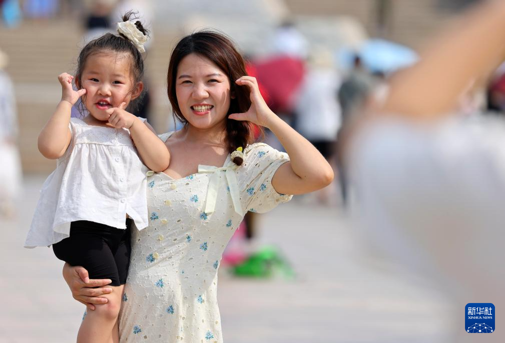 5月3日,家长带着孩子在海南省三亚市南山文化旅游区游览。
