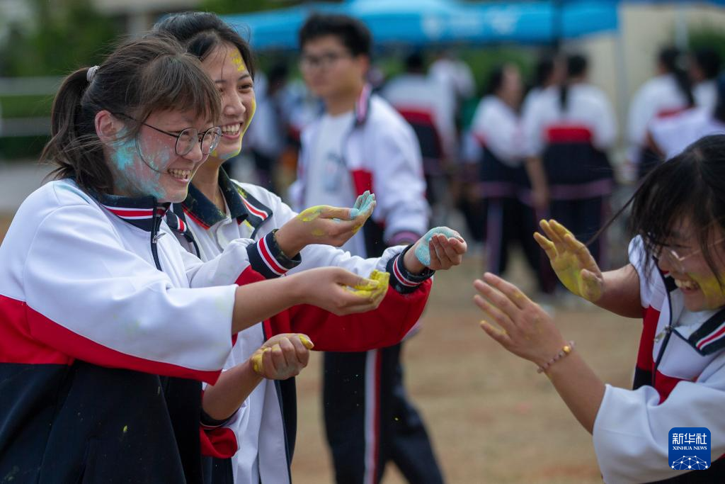 5月6日,云南省曲靖市沾益区第四中学,高三年级学生参加学校组织的游园活动。